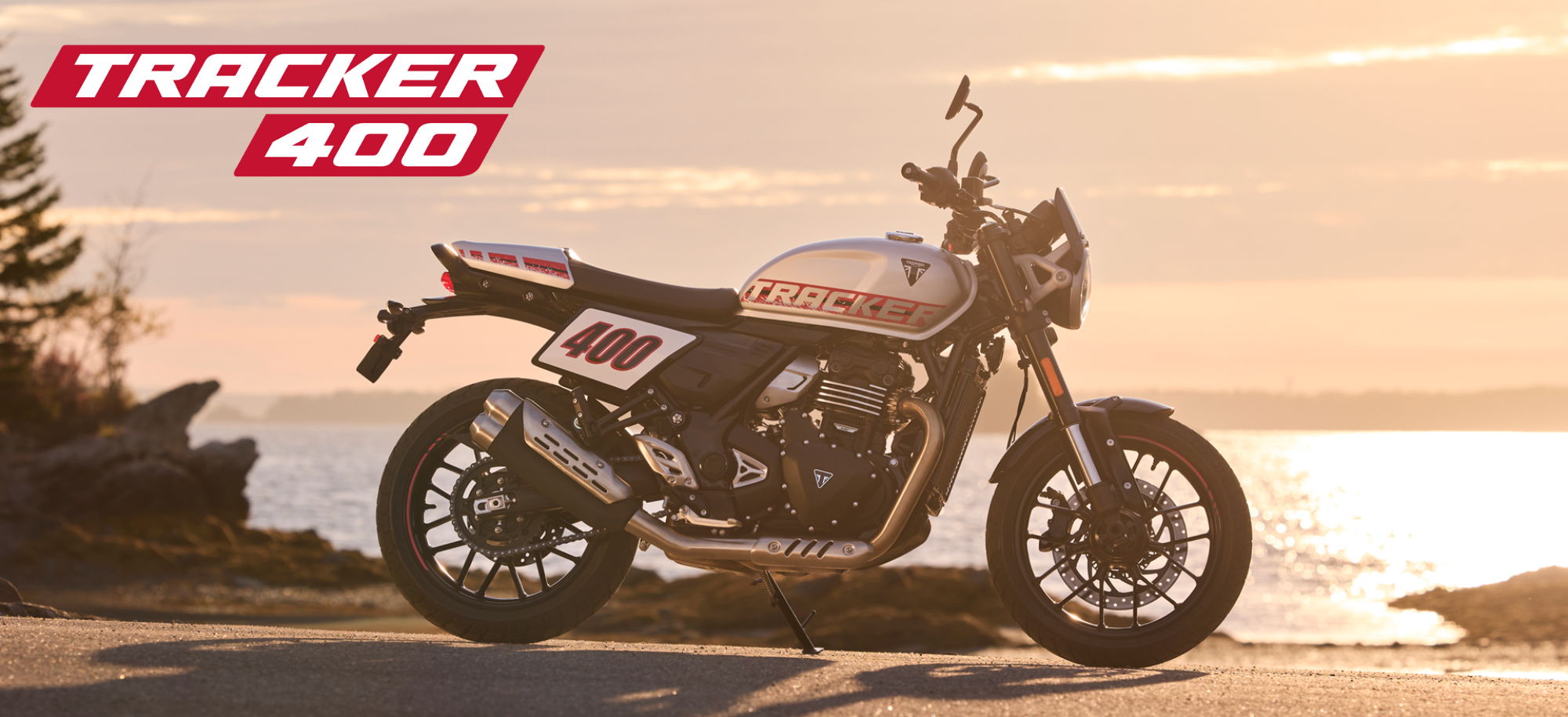 NOuvelle Triumph Tracker 400 (Compatible permis A2).Un look urbain et agressif, une position de conduite naturelle et facile, un moteur monocylindre TR serie plus puissant.